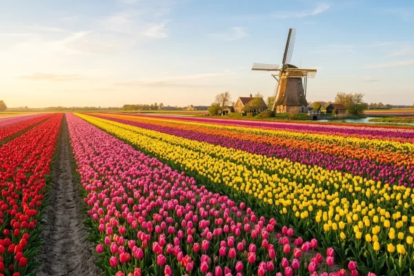 In Flevoland ligt het grootste aaneengesloten bloembollengebied van ons land. Hier rijd je letterlijk tientallen kilometers langs een tapijt van kleuren.